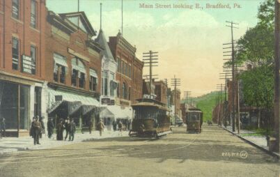 A "breezer" and a standard closed car in a summer scene, Bradford PA.