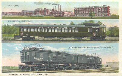 A card commemorating the Eerie, PA plant of General Electric and some of its products. Granted, it's slightly off topic for a trolley-themed page, but between an interurbanish-looking doodlebug and an electric locomotive, I figure we've got all the essential elements!