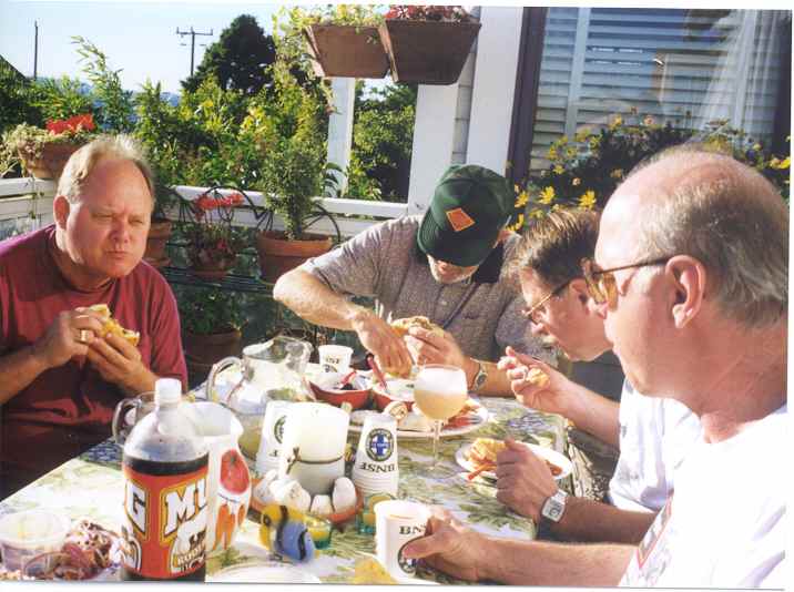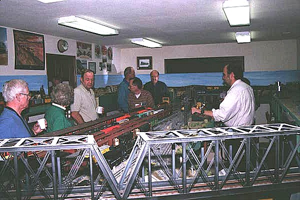 the July meeting, complete with sunshine, hamburgers, and trains big and small.