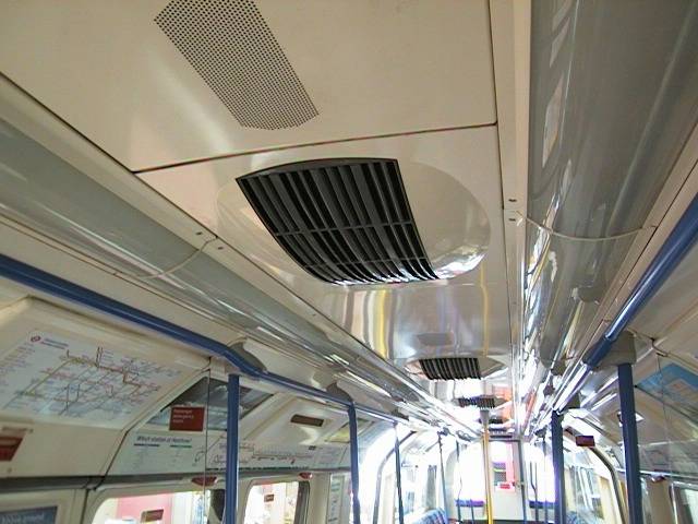 New ceiling fans have been installed inside the cars. These are powered by a static converter added under each trailer car and powered of the adjacent DM car. The ceiling fans do not provide air conditioning as there is no space for the equipment inside a tube car and nowhere to dispose of the heat generated inside a tube tunnel.