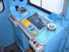 The C Stock cab arrangement was originally designed for Automatic Train Operation and the arrangement of the controls is similar to the 1967 Tube Stock built for the Victoria Line. The traction/brake controller is on the left hand side of the control desk and the selector key on the right. In the centre of the desk are the air gauges and speedo with some indicator lights. It was intended that the ATO code indications would be displayed here too. After a few months in service, it was found that the display had to be protected by a transparent plastic cover, which unfortunately acts as a reflector in bright sunlight, making the display almost invisible.