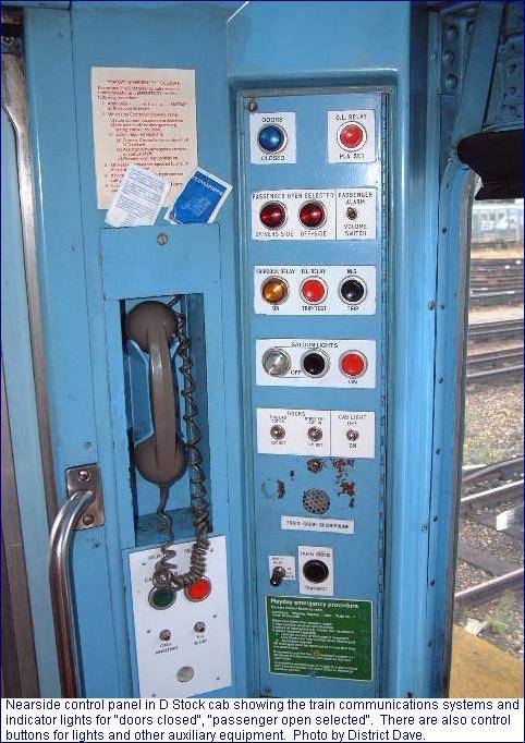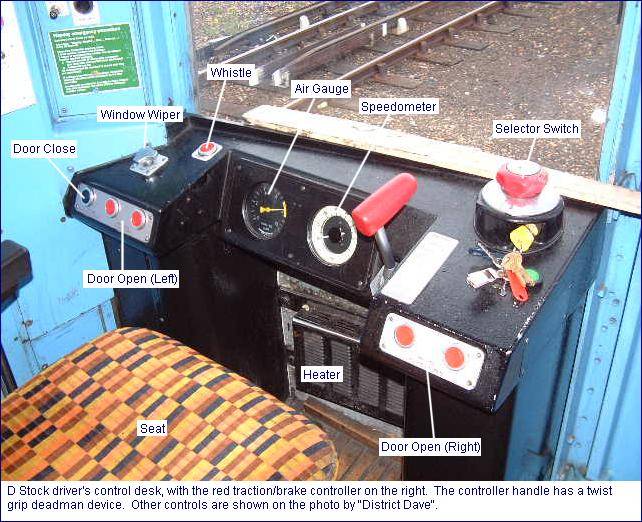 The D Stock cab arrangement was a completely new design for London Underground. It resulted from a suggestion by a driver that the existing controls were poorly laid out and induced fatigue. The desk was arranged so that gauges were easily readable, the power/brake controller was operated by the right hand, heat did not get into the driver's eyes and the telephone handset was easily operated. Any driver on the District Line will quickly tell you that the D Stock cab layout is a lot better than that of the C Stock, which is also used on sections of the District.