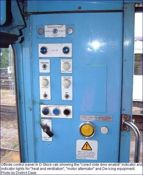 The door controls include Passenger Door Control (PDC) and Selective Reopen. With passenger door control, the train operator can release the door controls so that passengers can open the door where they located while other doors remain closed. It was popular with passengers during the winter but the poor ventilation of the D Stock made the inside of cars unpleasant at times, so PDC was not used during the summer. Selective Reopen allows the train operator to reopen the doors on a car where a door has failed to close, without opening the doors on other cars. This allows an obstruction to be cleared without the risk of further delay due to other passengers attempting to board the train. At present, PDC is not used because there have been some incidents of misuse by passengers.
