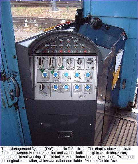The TMS was fitted as part of a programme of engineering improvements carried out on the D Stock during the years 1995-96. The TMS replaced an earlier version of monitoring system called a Train Equipment Panel. During the programme the trains were also equipped with "Correct Side Door Enable" (CSDE), to prevent the train doors being opened on the wrong side of the train.