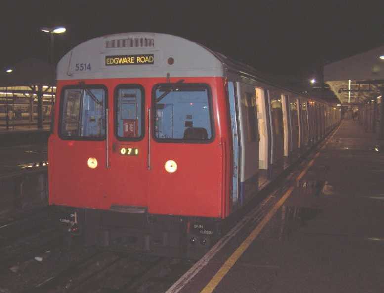 view of a C Stock ready to depart for Edgware Road. Photo by District Dave.