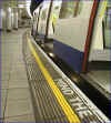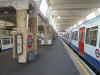 with a D Stock in the station. This causes a step up at one end of the platform and