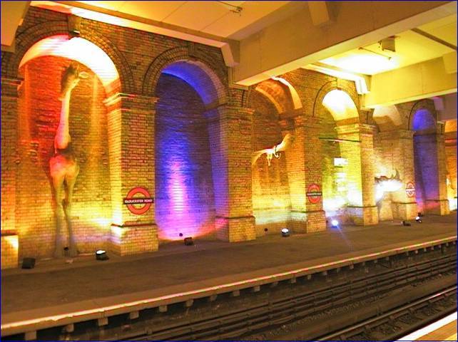 Metropolitan Railway platform at Gloucester Road, which is now used to display art at