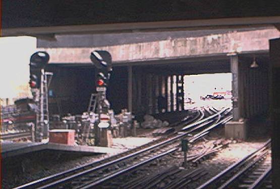 far side of the bridge, the end of the District Line train can just be seen. It is