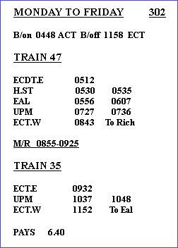 usually posted. The duty shown here is the second duty of the day at Acton Town