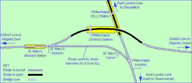 the District (west) end is St Mary's Junction, while the one at the ELL end is Whitechapel