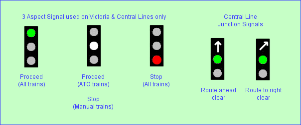 Signal Types - Signals on ATO Lines - Signs on ATO Lines - Central Line Signal Identification - Platform Repeaters - X Signals