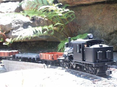 Turrella Tramway’s B Class Climax seen near the cliff face near