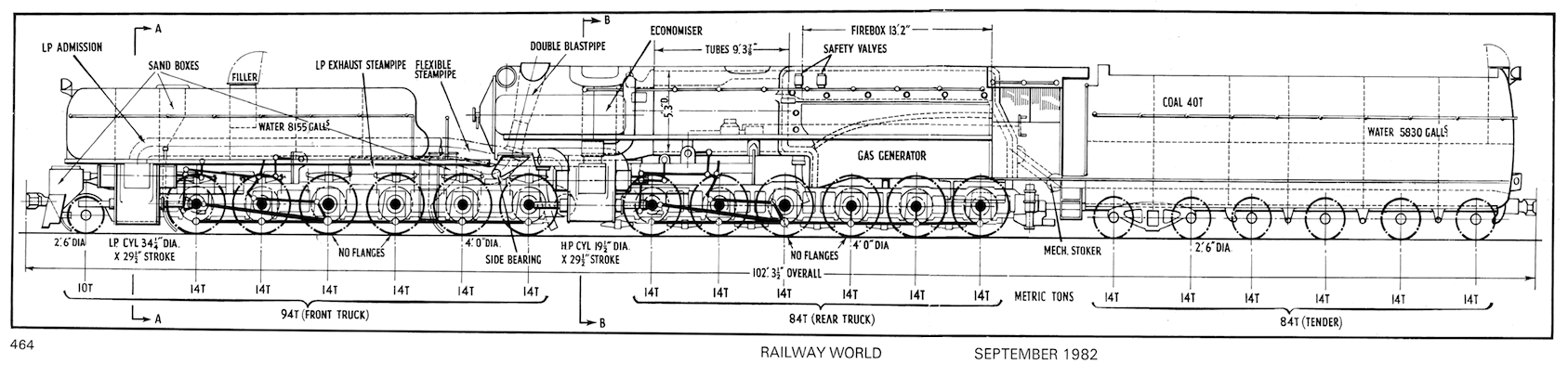 Campbell collection 4-6-2 #4674 was a project to show that the plentiful low-grade coal from the mines at Rio Turbio could be used in coal burning locomotives for all of Argentina. This engine was originally designed and built to burn imported high-BTU Welsh coal (similar in characteristics to U.S. Pocahontas coal). Using his Gas Producer Combustion System, Porta successfully converted the engine to operate on Rio Turbio coal (very similar to the low-grade coal burned in the Union Pacific's locomotives), while maintaining the same performance it had achieved with the original fuel. Porta achieved his successes through careful attention to small details and by the application of strict engineering principles to steam locomotive design. No single change could produce dramatic improvements; Porta applied many small improvements to areas that had been ignored before. These included items such as water treatment, lubrication, materials, servicing techniques, mechanical fasteners, and others. Not only was power and efficiency greatly increased, but maintenance was greatly reduced and the operator's jobs were made easier. After a few years at the Rio Turbio, Porta moved back to Buenos Aires to join the Instituto Nacional de Tecnologica Industrial (INTI) where he became the head of the thermodynamics department. At INTI, Porta was able to devote time to thinking about the next generation of steam locomotives. In 1969, the railways in Argentina seemed to suffer an epidemic of water quality problems, and they asked for Porta's assistance. 4-8-2 No. 1802 of the Belgrano Railway was chosen as a test engine, and Porta developed an on-board water treatment system based on the French TIA system. The water treatment system was so successful that it was eventually possible to operate the engine with boiler wash-outs only twice in a full year. The engine was also modified by Porta with multiple improvements, including improved exhaust, improved valve events, and a high adhesion tire profile.