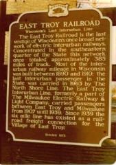 Once part of TMER&L's interurban line connecting East Troy to Milwaukee, the seven-mile segment from East Troy to Mukwonago is the last remnant of Wisconsin's network of interurban lines. It has been continuously electrically operated since 1907.
