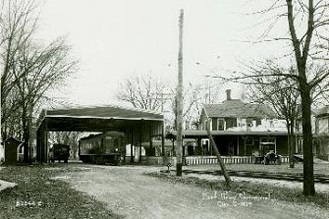 Early postcard view. The house on the left would become the station. Waiting room downstairs, living quarters an second floor.