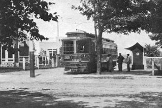 1927 shed erected to shelter riders on the interurbans and connecting motor bus lines. Although passenger service ended in 1939, the shed remained into the 1960's.
