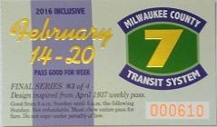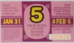 Passes and transfers continued to be printed in house by subsidiaries and succesors..... The Milwaukee Electric Railway & Transport Co., Milwaukee& Suburban Transport Co. and finally Milwaukee County Transit System, until February 2016.