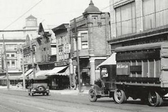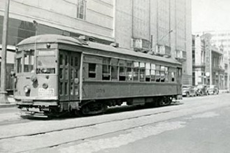 Right: Single-truck Birney 333 heads south on 5th street. Although the Birney's only spent a short time in Milwaukee, mostly during WWII, they earned the nickname "Dinky" for the city streetcar line.