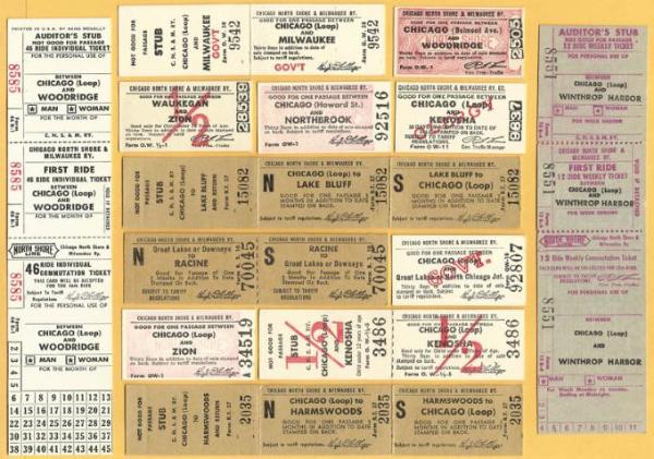 Here are just a few examples of the public timetables and the hundreds of various tickets used by the North Shore Line. They needed tickets for travel from each station to every other station, as well as different types for commuters, students, clergy and service men.