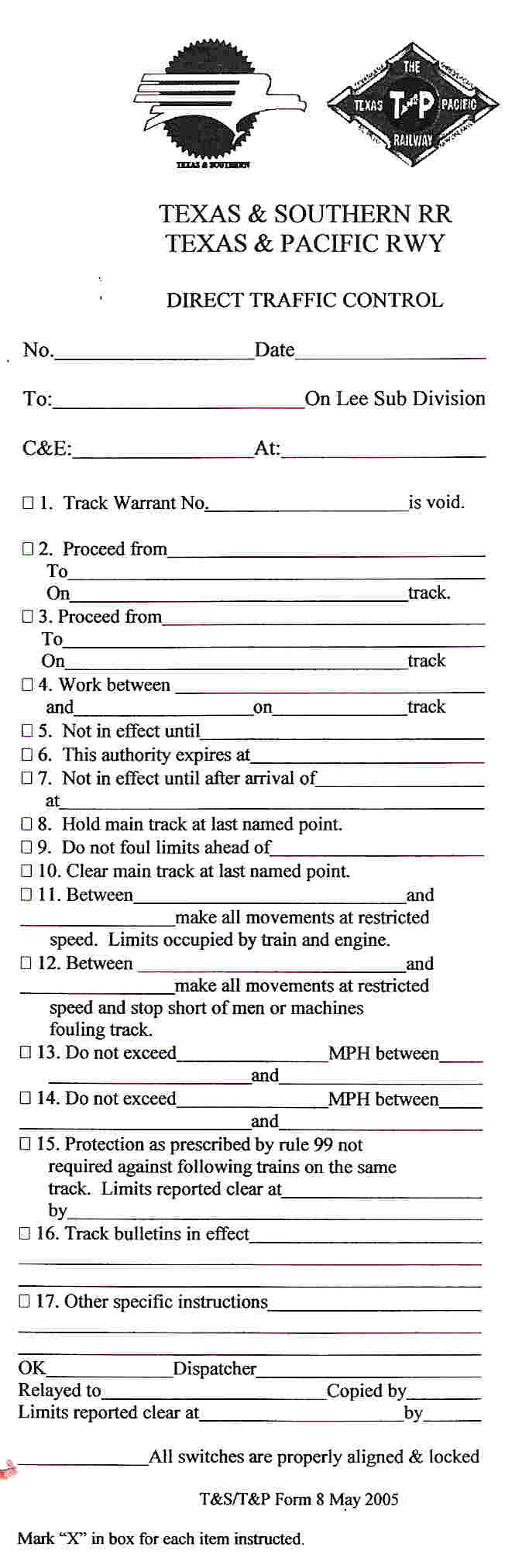 In addition, the ATSF has trackage rights from Temple to Sweetwater via the Lee Sub Division. When facing the railroad, SOUTH is always to your right; NORTH is always to your left.