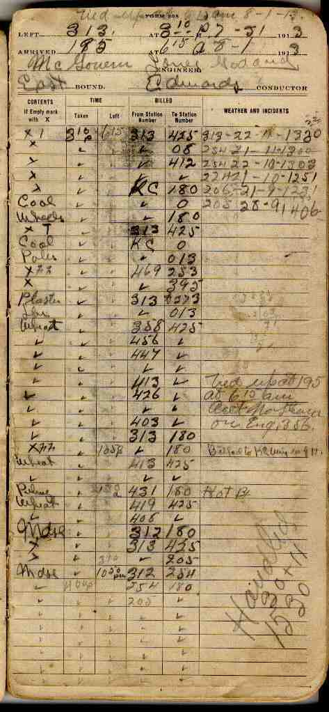 Chicago Great Western R. R. Co. Freight Conductor's Car and Tonnage Records