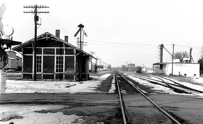 The station at Kenyon, Mn - Dec. 26, 1966. The CGW has left a few traces in Kenyon. South of town along Minnesota Highway 56, there is a long cut along the left side of the road from Kenyon south to Skyberg.