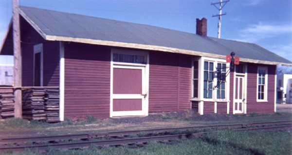 The original station at Hudson, Ia. This building was originally used by the CGW as a combined passenger/freight station at Hudson. It has been relocated to its current place as a roadside museum approximately 5 mi. SW of Waterloo Iowa on US Highway 63.