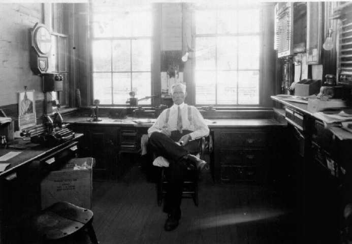 Lewis A. Tolstead (Tolstedt) in the station office at Stanton.