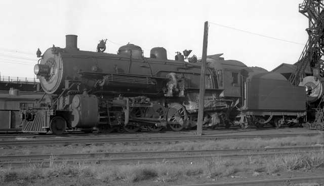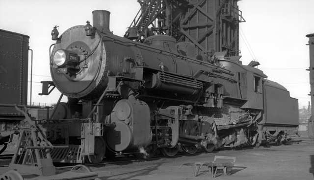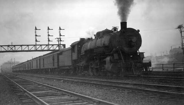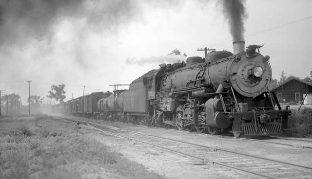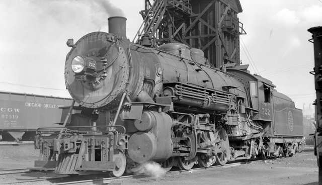 CGW 722 type 2-8-2, with passenger train, 1933.