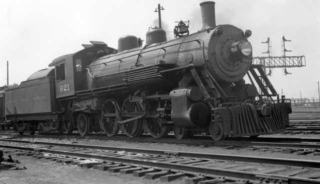 CGW 921 type 4-6-2, with passenger train, 1932.