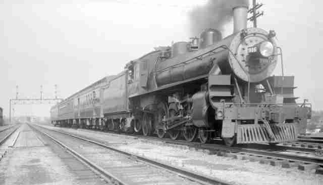 CGW 916 type 4-6-2, with passenger train, 1938.