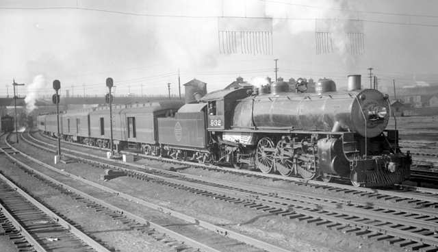 CGW 932 type 4-6-2, with passenger train, 1934.