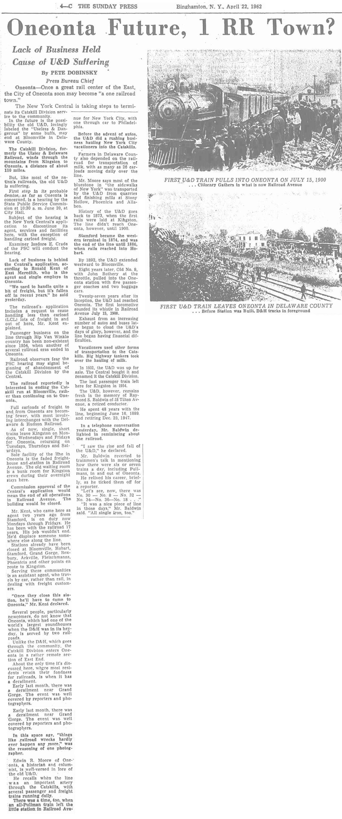 Oneonta Future, 1 RR Town?The Sunday PressApril 22, 1962