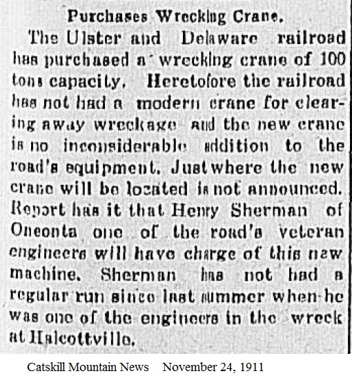 Purchases Wrecking CraneCatskill Mountain NewsNovember 24, 1911