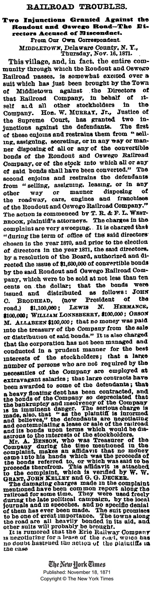RAILROAD TROUBLESNew York TimesNovember 18, 1871