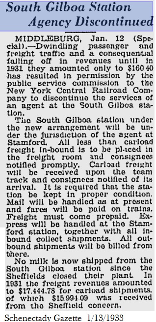 South Gilboa Agency DiscontinuedSchenectady GazetteJanuary 13, 1933