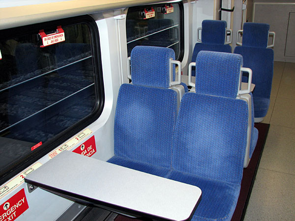 TRE's Bombardier Bilevel cars rode reasonably well, with some noticeable sway at speed. I rode downstairs because I had several bags and was on my way to the airport. The windows were reasonably sized, with plenty of emergency windows. The seats weren't as comfy as the CRM cars, but I wasn't squirming terribly after my 40 minute ride. Overall, I would consider the experience to be sufficient for commuting, but not as nice overall as the CRM coaches. Still, with the sheer volume of cars in service, Bombardier's Bilevel coach is the industry's standard-bearer. |