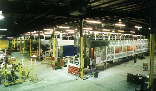 Colorado Railcar has invested literally millions of dollars in the design and development of this prototype, and hasn't wasted any chance to get the car before the public eye. In its first two seasons, it has done demonstration duties in nearly every major metropolitan area in the United States, and even paid a visit or two to Canada. And with that rigorous demo schedule has come the need for a little touching up, and a few modifications. I was very fortunate to conclude my tour of the facility with a closer look at the DMU prototype. It will be interesting to see what changes have taken place at the facility when and if I am fortunate enough to return. But in the mean time, I owe a debt of gratitude to the employees of Colorado Railcar for hosting me for an afternoon at the facility. I hope these tours help give a little flavor of what it's like at the birthplace of the world's most luxurious dome cars. In August, 2004, I toured the shop again, and composed a second tour page with photos from that visit. You can find that page by following this link. Enjoy! Use the back button on your browser to return to the car roster page that you came from. |