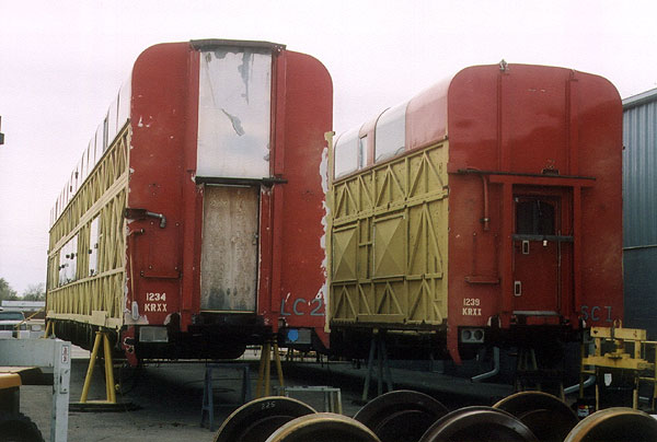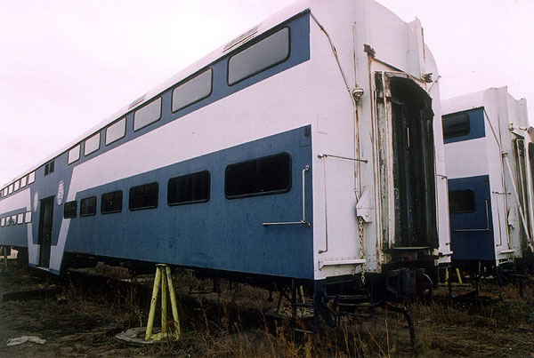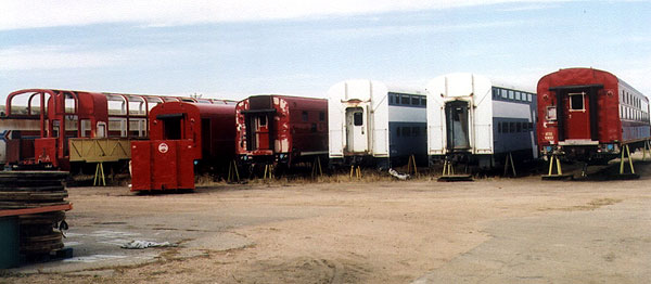 Ultradomes in waiting? Distant cousins? While the first four cars were built from bilevels like these, It's a common misconception, that they still are today. We've hopefully put that to rest in the new manufacturing section. So what exactly are these ex-CNW bilevels doing behind the CRM shop? Trading in their trucks and other parts. That's about it. As an aside, I'm kind of interested in these cars, as there was a long line of them parked at the Port of Pasco industrial complex where I used to live, and they were painted the exact same way. I recall one of them being shipped out a number of years ago, but I don't recall exactly where. I think it might have been here. There are still three cars all painted the same way in Pasco, and several more in Alaska. Anybody know anything about this all?