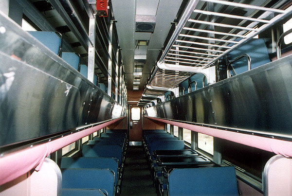 Gallery seating inside the car shown above. It hardly matches the ultradome style. But then the car was built for one purpose, and that was moving large numbers of commuters back and forth as efficiently as possible. And that it accomplishes. I did find the luggage rack in the center quite interesting. It's hard to imagine that the first four ultradomes started out that way.