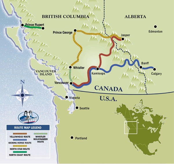 with CRM DMUs. Map courtesy Rocky Mountaineer Railtours.
