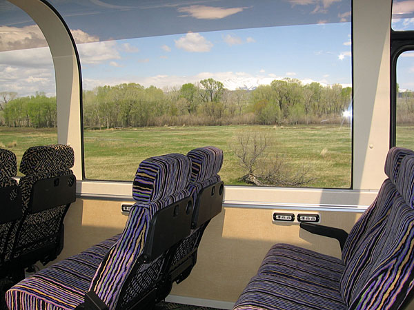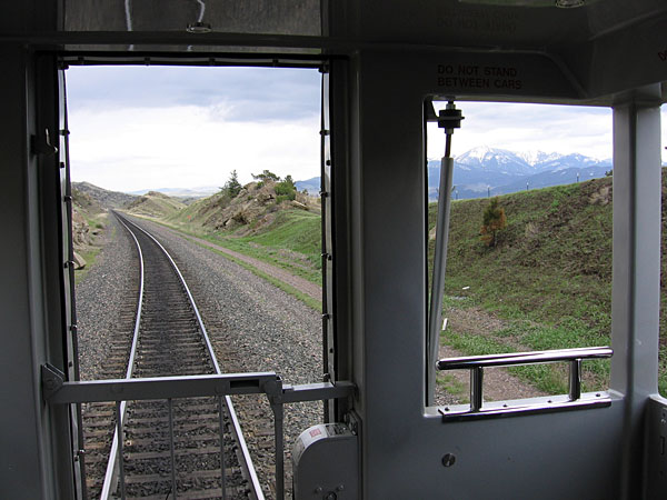 The observation platform of the 1059 isn't huge, but it's ample enough to afford views like this one of Bozeman Pass in Montana. (Granted, this is one view you won't get on the Alaska tour...) One major difference between the C cars and their predicessors is the gate on the pass-through rather than a swinging door. This was a late design change, and may be retro-fitted onto the other cars as well.