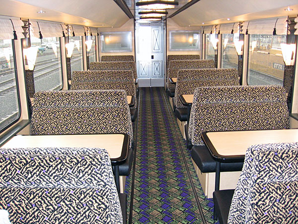 The dining room of the 1058 is decorated similarly to the other HALX cars, though it just felt a little lighter. The effect might have been an illusion caused by the lack of a division in the middle of the room by the HVAC ducting as is common on other CRM cars. Though I was sure that the valances over the windows were different, looking at photos of the other cars proved me wrong.