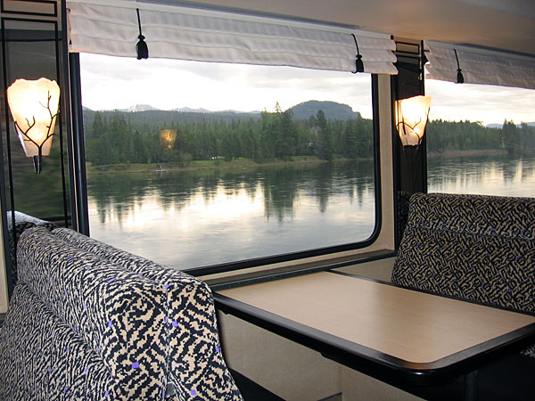 Don't worry about missing the sights. As you dine in the 1058, you might not get to see the Clark Fork River in western Montana, but you'll still get a visual treat through the big picture windows in the dining area. I know I have said it before, but I still love the lighting fixtures in the Holland America cars, like the sconce lights shown here.