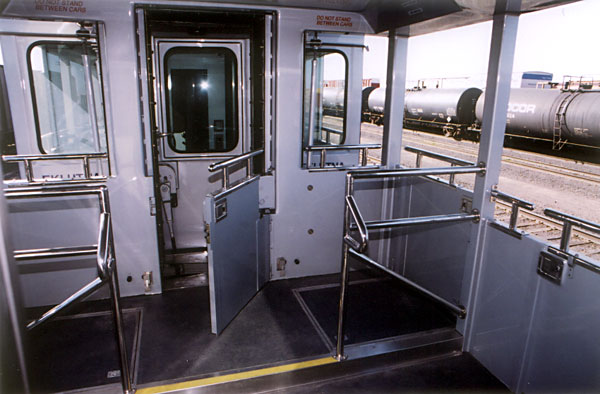Wouldn't it be great to be on this platform watching the Alaskan scenery roll by, rather than looking at a string of tank cars a few tracks over? Still, you can see the finish work that was done to the platform area as well. Note the location of the handbrake on the next car over, HALX 1054. During transport, several of the buffer plates were removed from the cars for handling purposes, including both buffers between the 1055 and 1054.