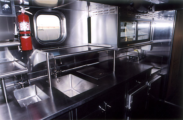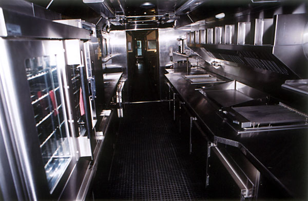Holland America's A cars (even numbered) feature a kitchen that would make any chef envious, so appointed since the cars travel in pairs, so kitchens like the one in the HALX 1054 must serve about 600 meals over the course of a day. And the HALX cars are outfitted for the task, with coolers, convection ovens, gas burners, freezer and even a dishwasher.