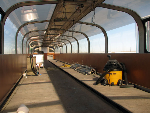 Princess’ cars operate in five car sets, lettered A through E, in order. They are arranged so the location of kitchens and dining rooms makes serving meals easier and more efficient. Princess’ cars operate at the end of the Alaska Railroad’s Denali Star passenger train between Anchorage and Fairbanks, AK. Cars 7088 and 7089 are designated as D cars. They were built in 1999, and are the only cars in the Princess fleet to be constructed at CRM’s Ft. Lupton plant. The kitchen is on the leading end of the car, with the dining room at the back, adjacent to the dining room in the trailing E cars, 7084 and 7085. Like the other cars in the Princess fleet, the 7088 and 7089 seat 88 passengers upstairs, and 32 in the dining area. The D cars will receive a general refitting and renewal during the 2005-2006 winter off-season, which will include new interior upholstery, seating and décor, and new exterior paint. It is expected that the work is to be performed by Colorado Railcar in Ft. Lupton.