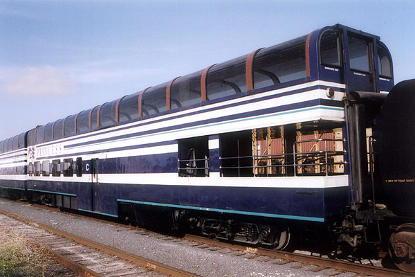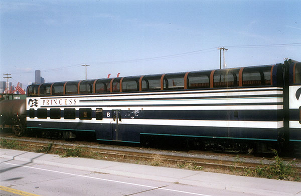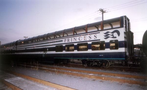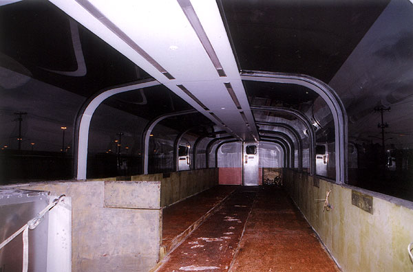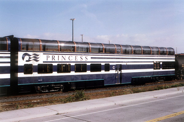 Princess Tours 2005 car refitting, part 1 Over the winter of 2004-2005, the first four ultradomes ever built — Princess Tours’ 7080, 7081, 7082 and 7083 — are being sent to Colorado Railcar for refurbishing and upgrades, and a general renewal of several systems. The first two cars, MSEX 7080 and 7081, arrived in Seattle on Sept. 30. The 7080 and 7081 were the first ultradomes ever built. To the best of my knowledge, they also have never actually been to Colorado, as they were constructed in an old WWII Navy blimp hangar in Tillamook, OR, about two miles from where I presently sit. I had the chance to look them over before they were shipped to Ft. Lupton. Being the first cars built, there are some significant differences between these and the domes that followed. The 7080-7084 were built using old Pullman bilevel gallery commuter cars. They still have the original center entrances, and several other features that aren’t common on the newer cars.