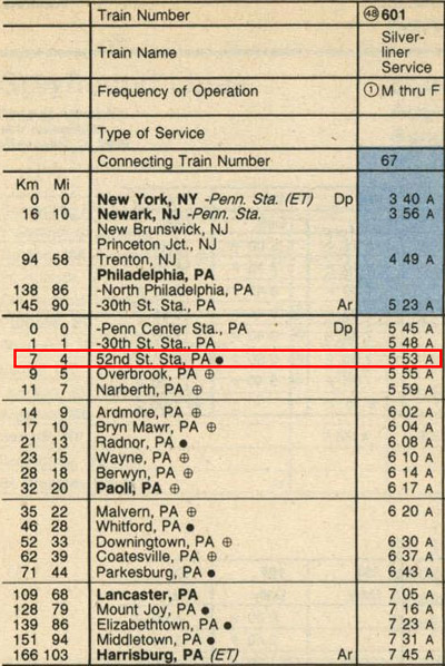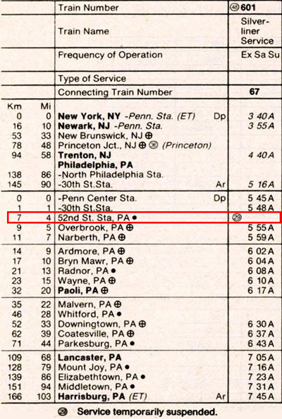 Service to 52nd St. Station was suspended (issued on February 1, 1981) After that, the station was closed and never opened again. (Source: timetables.org ©1981 National Railroad Passenger Corporation) |
