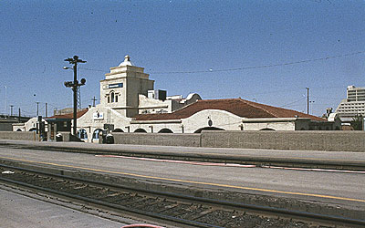 Former Amtrak Albuquerque Station destroyed by 1993 fire (June 1985)